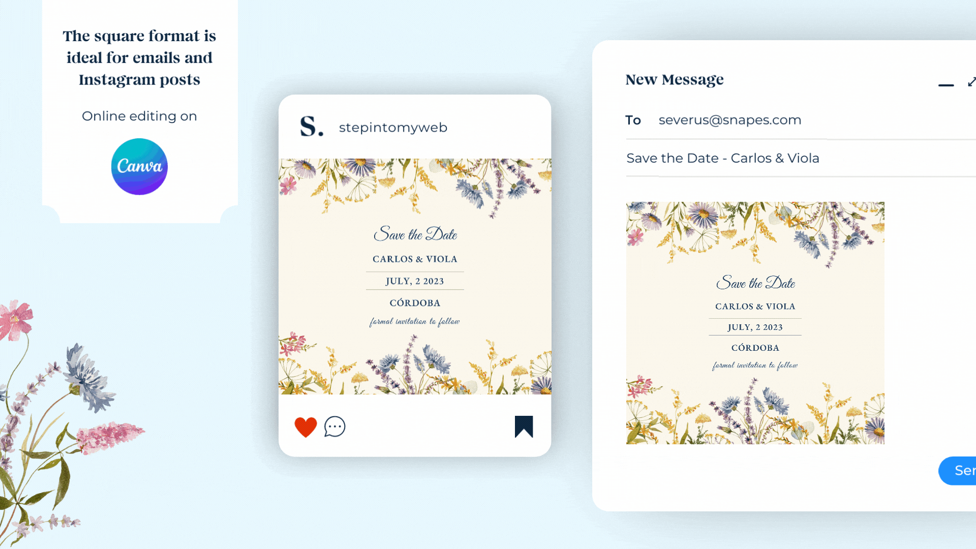 You will receive a Canva template link which will give you access to the save the date in two different formats (mobile and square)